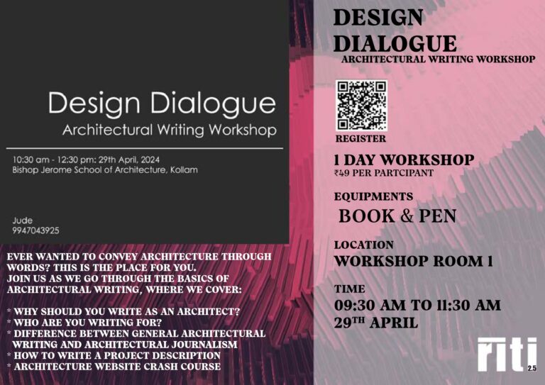 “RITI” is an initiative of Bishop Jerome School of architecture and design, that offers a unique opportunity for students to engage with public through exhibition seminar and workshops showcasing architectural studies and research by students.