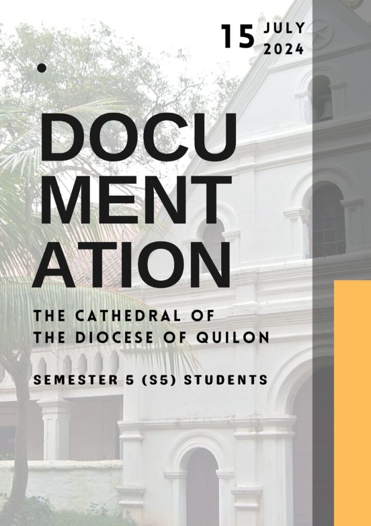 Semester-5 students are undertaking an extensive documentation project on the Cathedral of Quilon Diocese, one of the oldest churches in the region. Renowned for its architectural grandeur, this cathedral boasts a rich history with origins and significance that span centuries. The students aim to capture its magnificent architectural features, along with the historical events and cultural heritage that define this iconic structure.