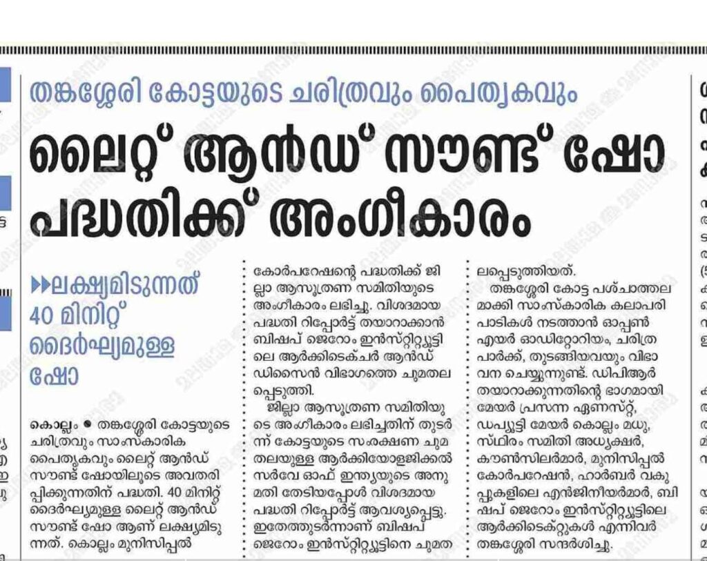 Kollam Municipal Corporation has entrusted The Architecture department, Bishop Jerome School of Architecture and Design, with the design and planning of this prestigious project, which is one of the first of its kind in Kerala.