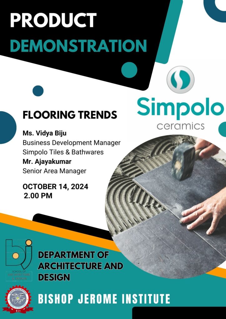 As part of an Industry interaction with academia, the Department of Architecture and Design organizes a product demonstration of Sympolo Tiles. This session is aimed to bridge the gap between industry practices and academic learning by providing students and faculty with firsthand exposure to the latest trends and materials in architectural design. The demonstration showcased a variety of tile collections, detailing their textures, finishes, and practical applications in both residential and commercial projects. Participants were introduced to technical specifications, installation techniques, and maintenance considerations, fostering a deeper understanding of real-world applications.