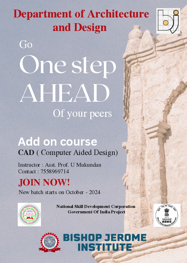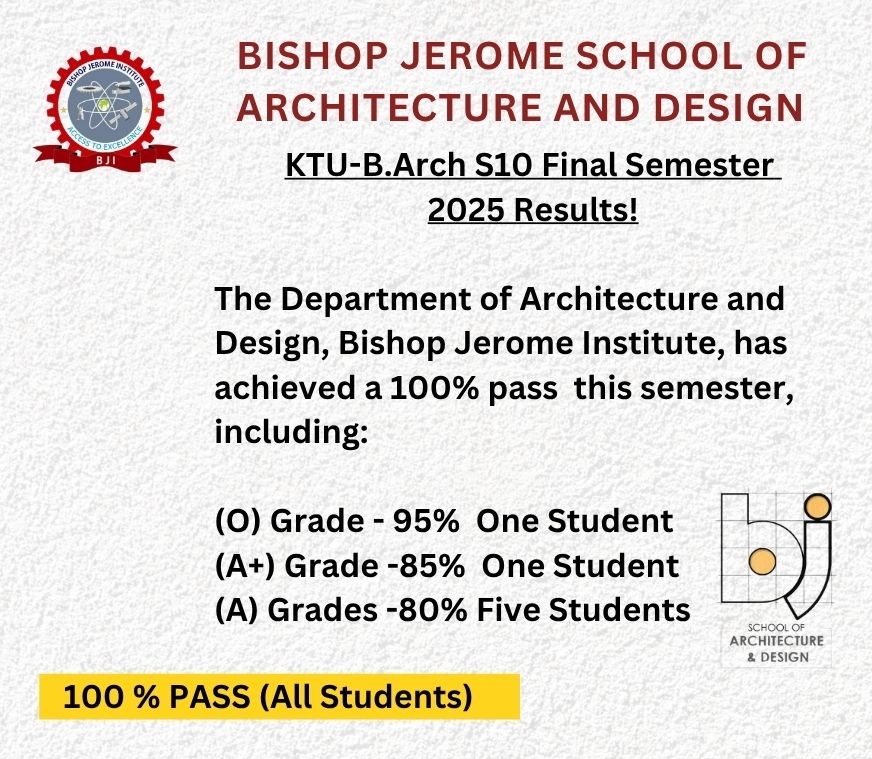 Bishop Jerome School of Architecture and Design (BJSOAD), function under Bishop Jerome Institute (BJI), is a premier institution dedicated to nurturing future architects, located in Kollam, Kerala State. The institution offers Five year full time B.Arch course and is affiliated to APJ Abdul Kalam Technological University and Approved by Council of Architecture, under Ministry of Education, Government of India.