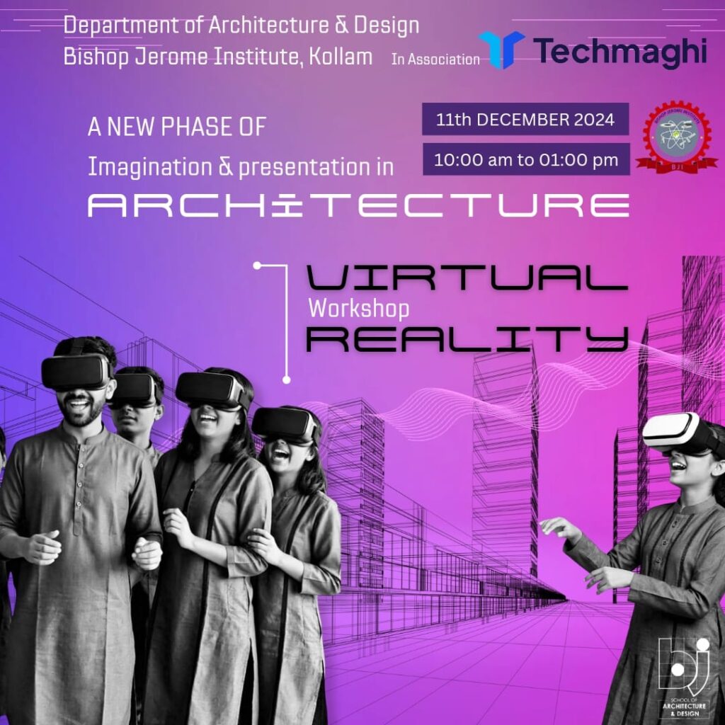 Architecture has transcended the boundaries of paper sketches, pencils, and even traditional 3D modeling on computers. It has entered an era where realistic experiences and the power of Artificial Intelligence are reshaping the way we design and present ideas. The Department of Architecture and Design, Bishop Jerome Institute, Kollam, in association with Techmaghi, is organizing a Workshop on Virtual Reality.