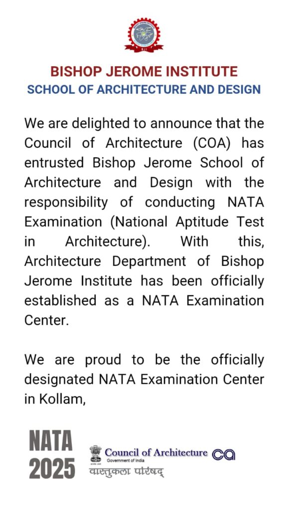 Bishop Jerome Institute School of Architecture, and Design, Kollam IN ASOCIATION WITH