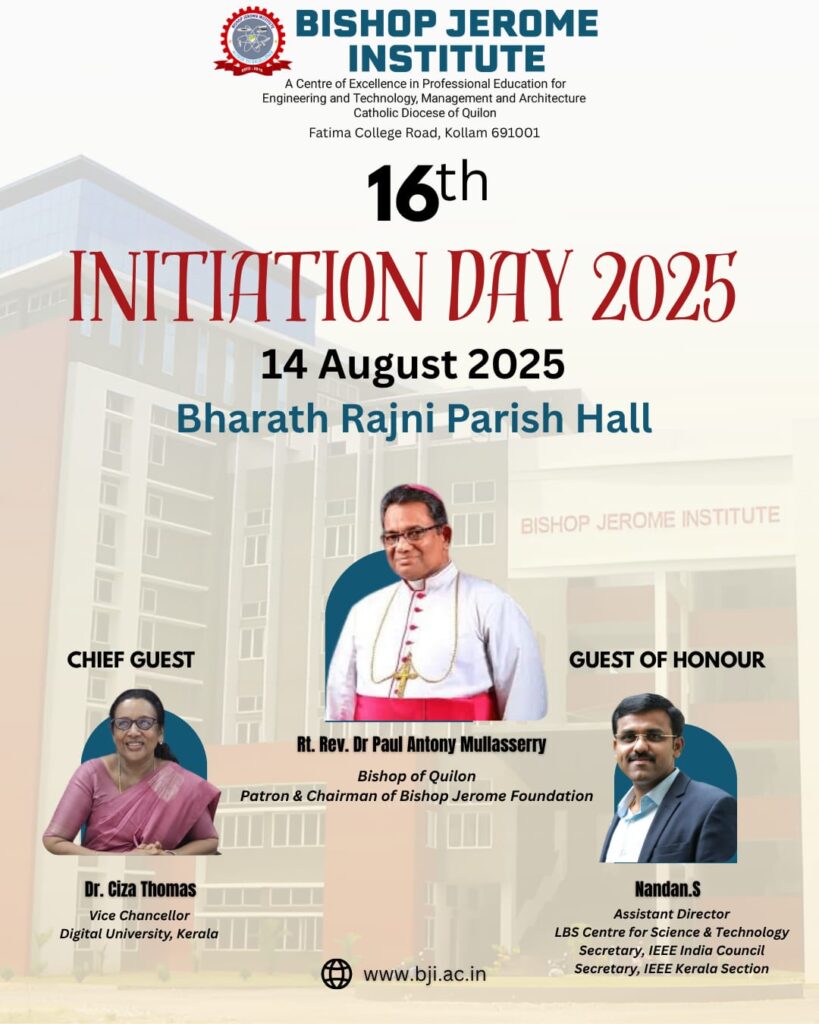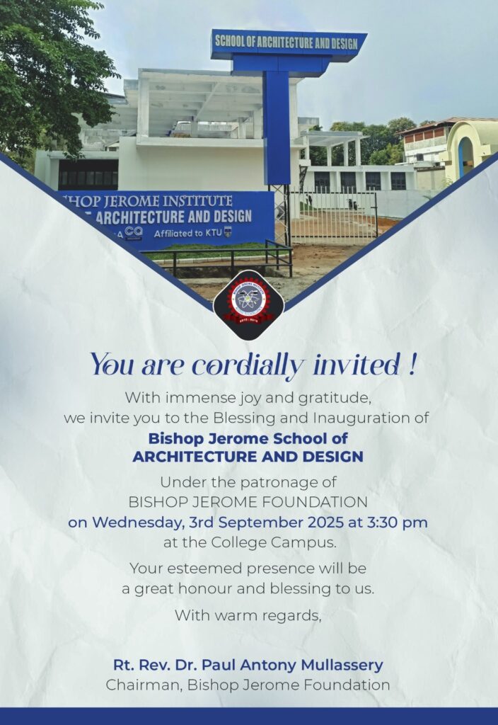 The newly constructed Architecture Block at Bishop Jerome Institute, Kollam, will be formally inaugurated on the 3rd of this month by His Excellency Dr. Paul Antony Mullassery, Bishop of Kollam.